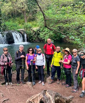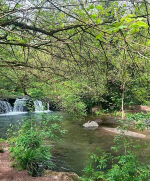 Il percorso si apre lentamente davanti a noi, lasciandoci accompagnare da chiacchiere leggere, battute scherzose e conversazioni più intime che si intrecciano tra un passo e l’altro. Il paesaggio si fa sempre più aperto e luminoso, guidandoci verso uno dei luoghi più suggestivi della giornata: le Cascate di Monte Gelato, nel cuore del Parco Regionale della Valle del Treja. Qui la natura ci regala un vero spettacolo: il fiume Treja si frammenta in una serie di piccole cascate immerse nel verde, tra rocce vulcaniche e alberi maestosi. Lo stupore si legge sui volti di tutti, è uno di quei momenti in cui il silenzio vale più di mille parole.
